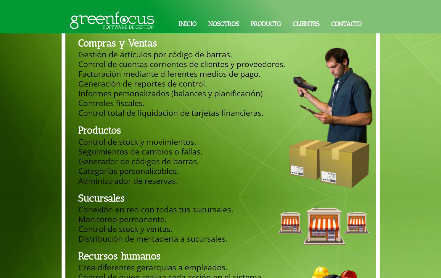 El software de gestión Greenfocus, especializado en sistemas para comercios minoristas, nos encargó el desarrollo de su sitio web.