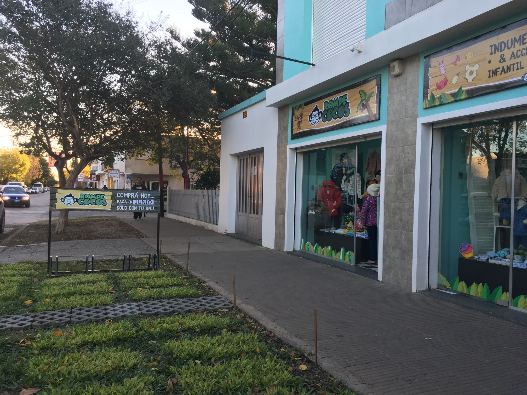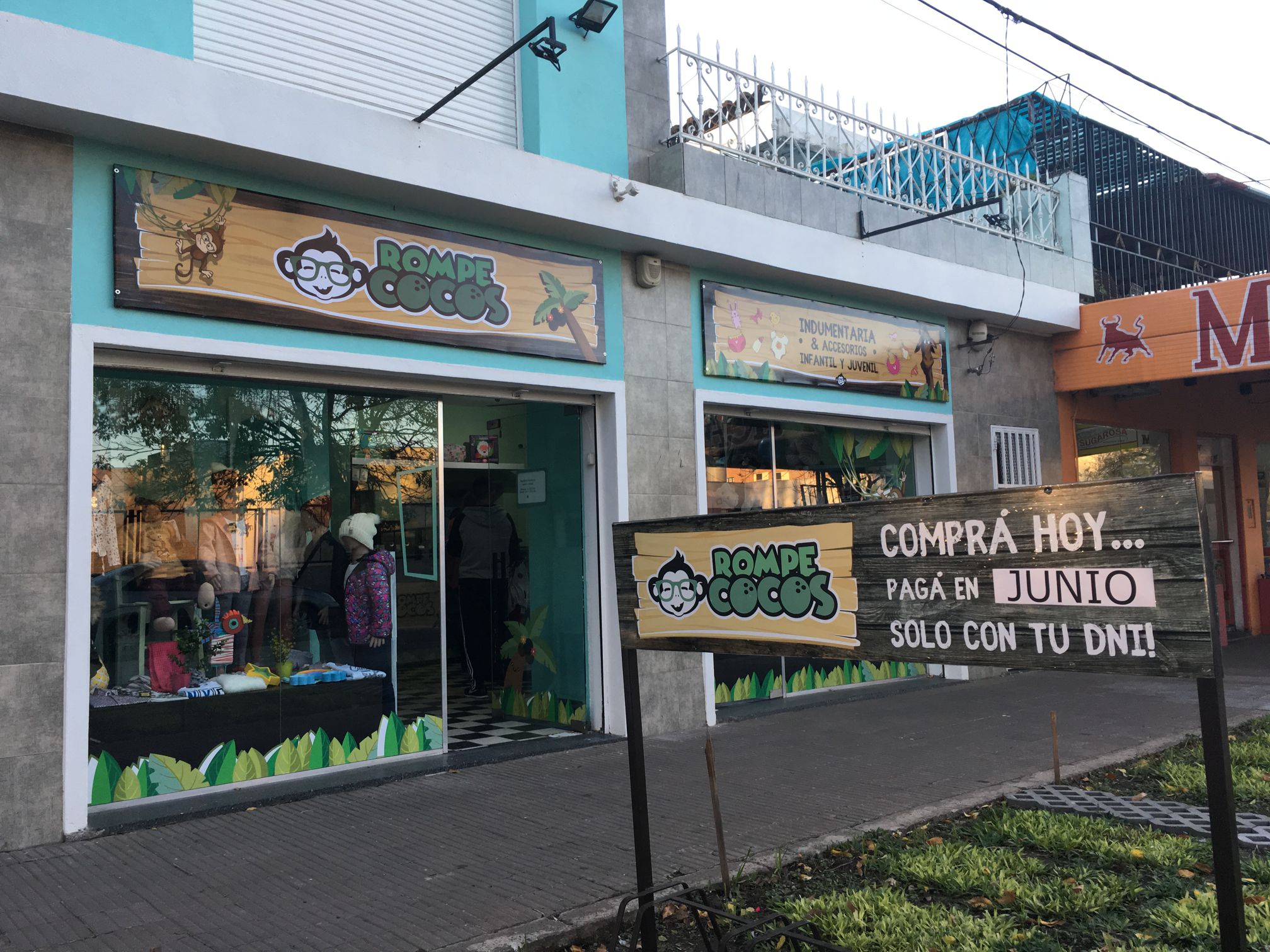 Desde ya, su nombre es poco frecuente, pero a nostros nos encantó salir un poco de los típicos nombres de locales comerciales y marcas orientadas a la indumentaria infantil y juvenil. Rompecocos se identifica con un logo que desarrollamos, porque su estilo es desestructurado y joven, siendo versátil para un rango de edades desde infantil a juvenil.